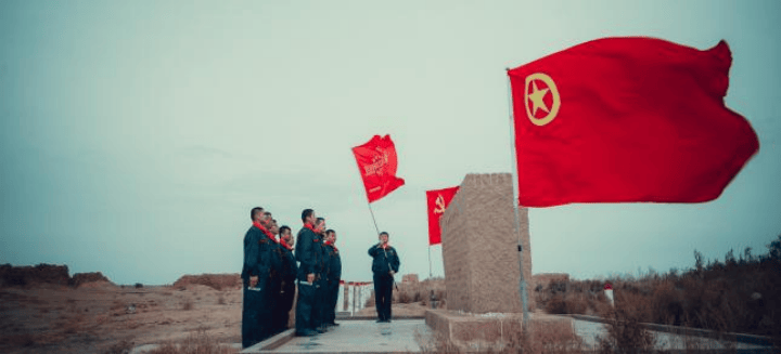 圖為新疆電信新一代苦水班成員在苦水舊址宣誓。