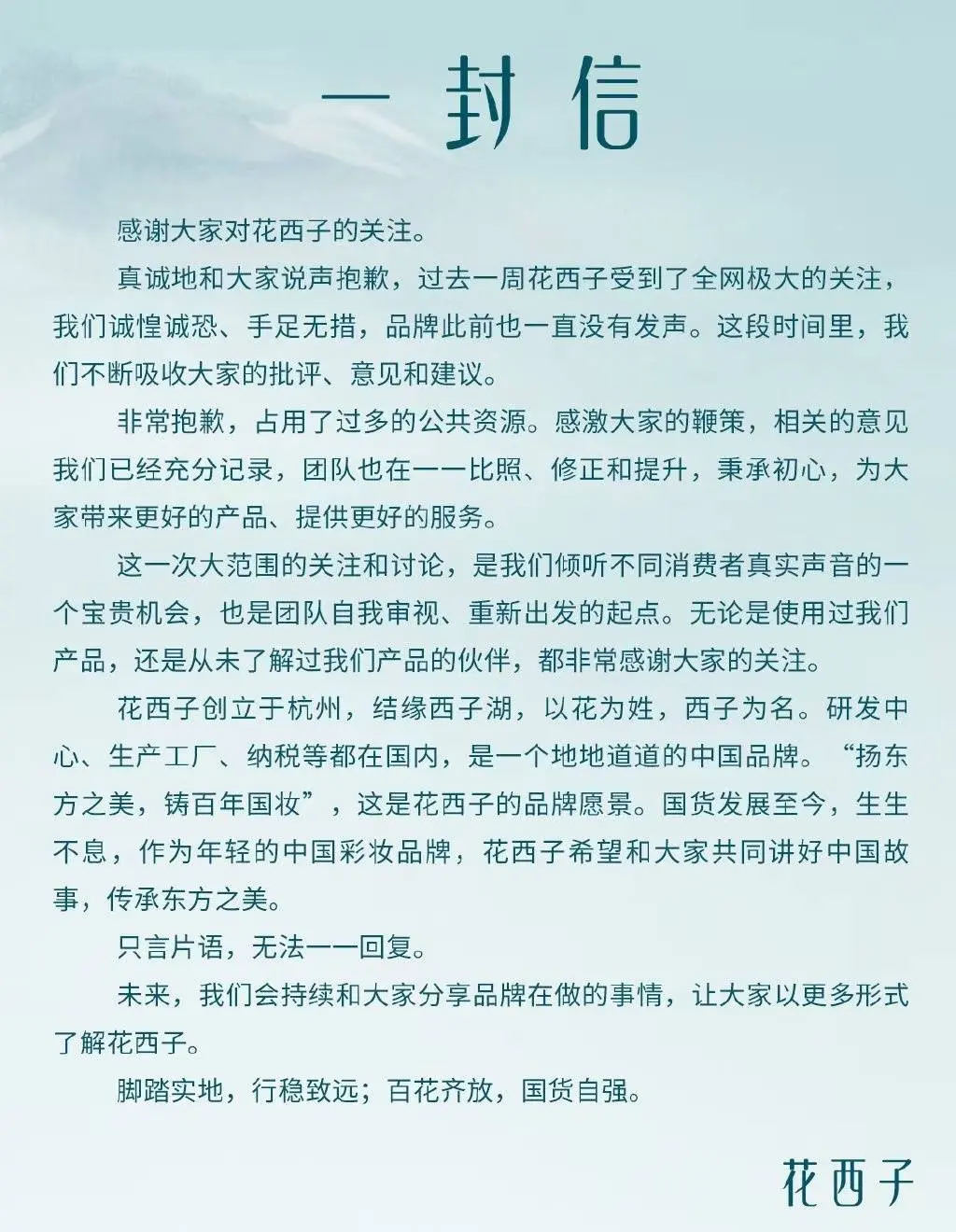 同年9月19日,花西子以“一封信”為題,發布公關公開信。