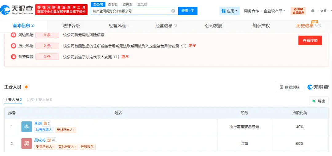 而文淵,原名為李淵。天眼查顯示,其曾與花西子另一位創始人吳成龍,于2016年共同成立了杭州藍闊視覺設計有限公司,目前該公司已注銷。文淵曾深度參與花西子爆款雕花口紅的妝造,以及整體品牌視覺體系的搭建。
