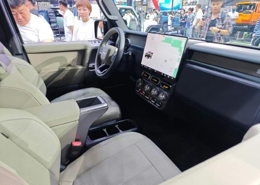 車內設計也采用的是硬派越野一貫的平直線條,但軟包面積夠大,每個座椅填充也都厚實柔軟,又很有家居感。中控臺配備了15.4英寸寬視角2.5K高清觸控屏,該屏幕支持觸控操作,集成了8155芯片,操作絲滑,內部APP也足夠豐富。