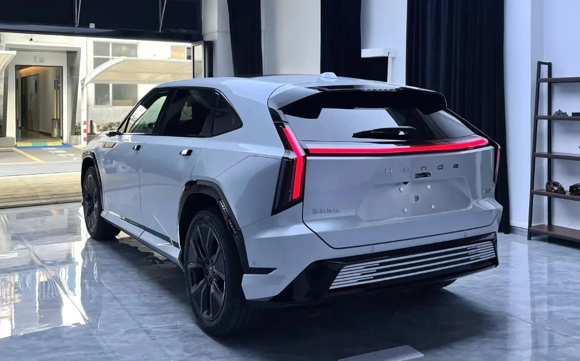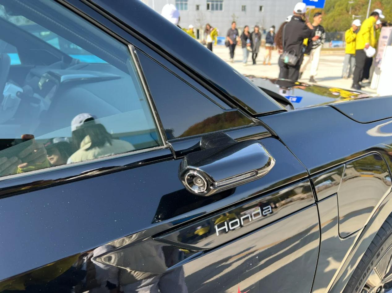 車身側面同樣有著激進的造型,A柱與車頂的銜接有著明顯的角度,與當下流行的流線設計截然不同,車頂后方則是緩緩下溜,保障車內的頭部空間。平直修長的腰線從前翼子板起貫穿至尾燈組,電子外后視鏡下方設有“Honda”標識,隱藏式門把手、雙五輻半封閉式輪轂都不會落下,提升時尚感同時優化風阻。