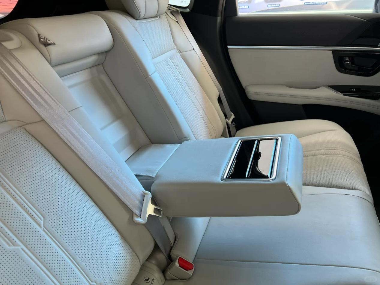 內飾方面,斜躺的縱向中控大屏成為了核心元素,配合獨立的懸浮式液晶屏組成雙屏系統,門板位置還有電子后視鏡屏幕,定下了科技的基調。方向盤有著別致的雙色拼接設計,盤輻上帶有實體按鍵,中央扶手前端下沉,按鍵式電子換擋機構、手機無線充電面板、雙杯架等配置都不會落下。