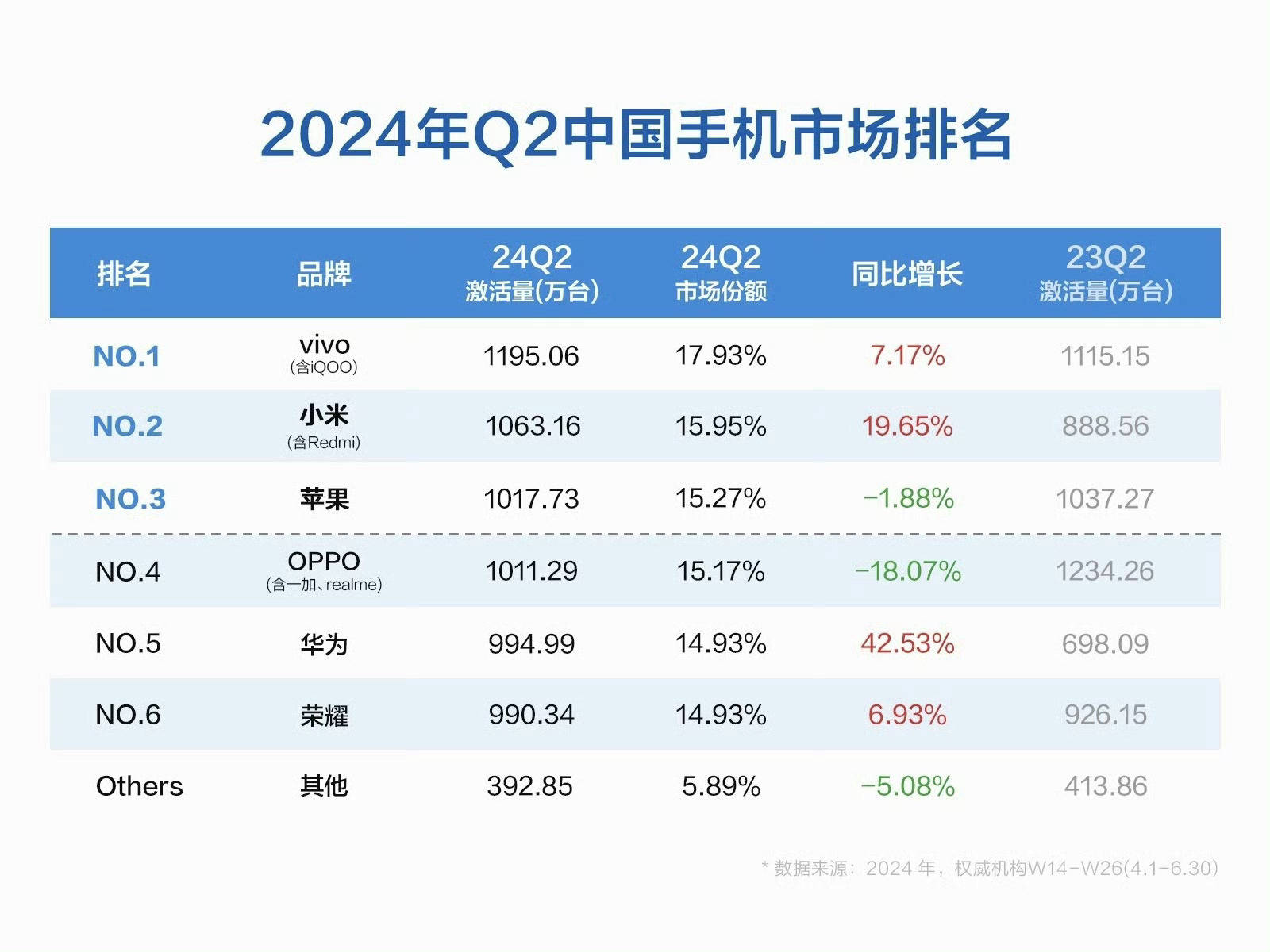 其他廠商出貨量為1354.12萬臺,市場份額為18.66%,同比下跌11.41%。作為橫向?qū)Ρ龋?023年Q4其他廠商激活量為1528.56萬臺,當(dāng)時排名第六的廠商是vivo手機。從第一季度開始,OPPO的成績都不太理想,這種情況一直持續(xù)到底第四季度,所以年度榜單跌出前五名在意料之中。