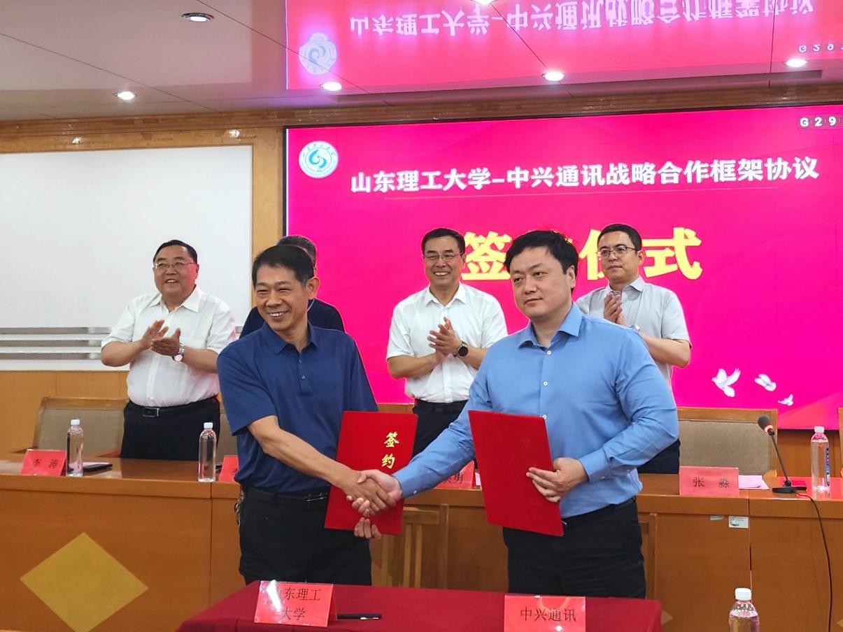 5 月 21 日下午,山東理工大學-中興通訊股份有限公司戰略合作框架協議簽約儀式暨項目遴選啟動儀式在山東理工大學舉行。