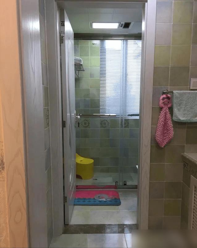 再看浴室,業(yè)主把原來的墻體拆除改造成干濕分離,洗手池外置,淋浴區(qū)單獨(dú)隔出。