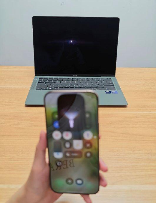 手機手電筒照射下的榮耀小鎂本2025款屏幕表現,新增抗反光AR膜,反光和光斑控制的非常好,據說屏幕的峰值亮度提升到了1600nit,高亮環境下更清晰通透,現在筆記本也挺卷的!