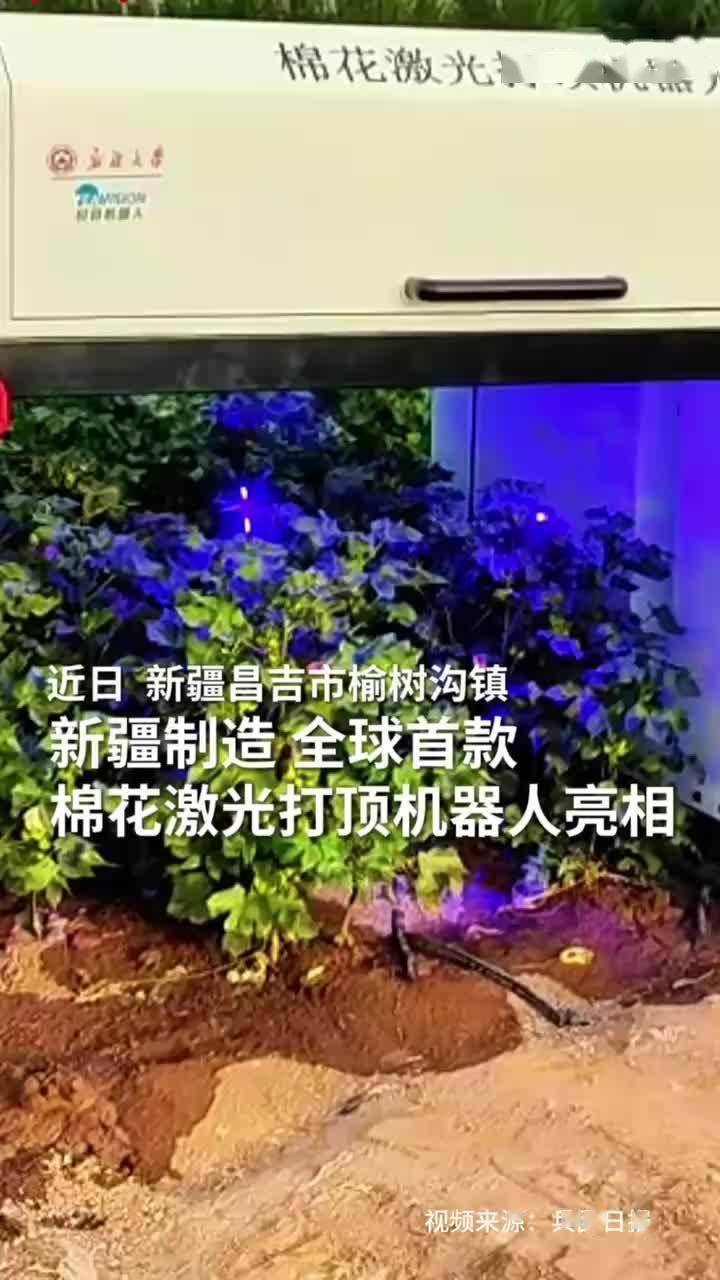 該機器人由新疆大學聯合新疆極目機器人科技有限公司歷時 3 年打造,經自治區農業農村機械化發展中心論證,成為全球首款棉花激光打頂機器人。