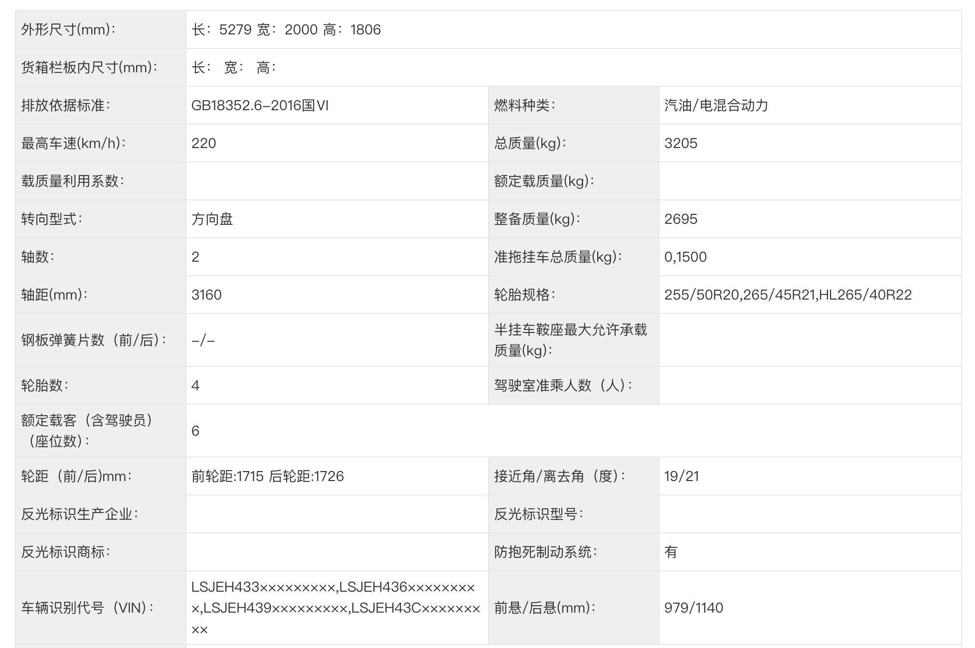 動力總成上,作為增程電動SUV,搭載160kW/230kW的雙電機,匹配的是上汽1.5T增程器,輸出功率114kW。電池組是來自寧德時代的三元鋰電池,容量為65.9度電,WLTC純電續航里程318公里,預計CLTC工況可以達到400公里,而百公里油耗僅6.5L左右。
