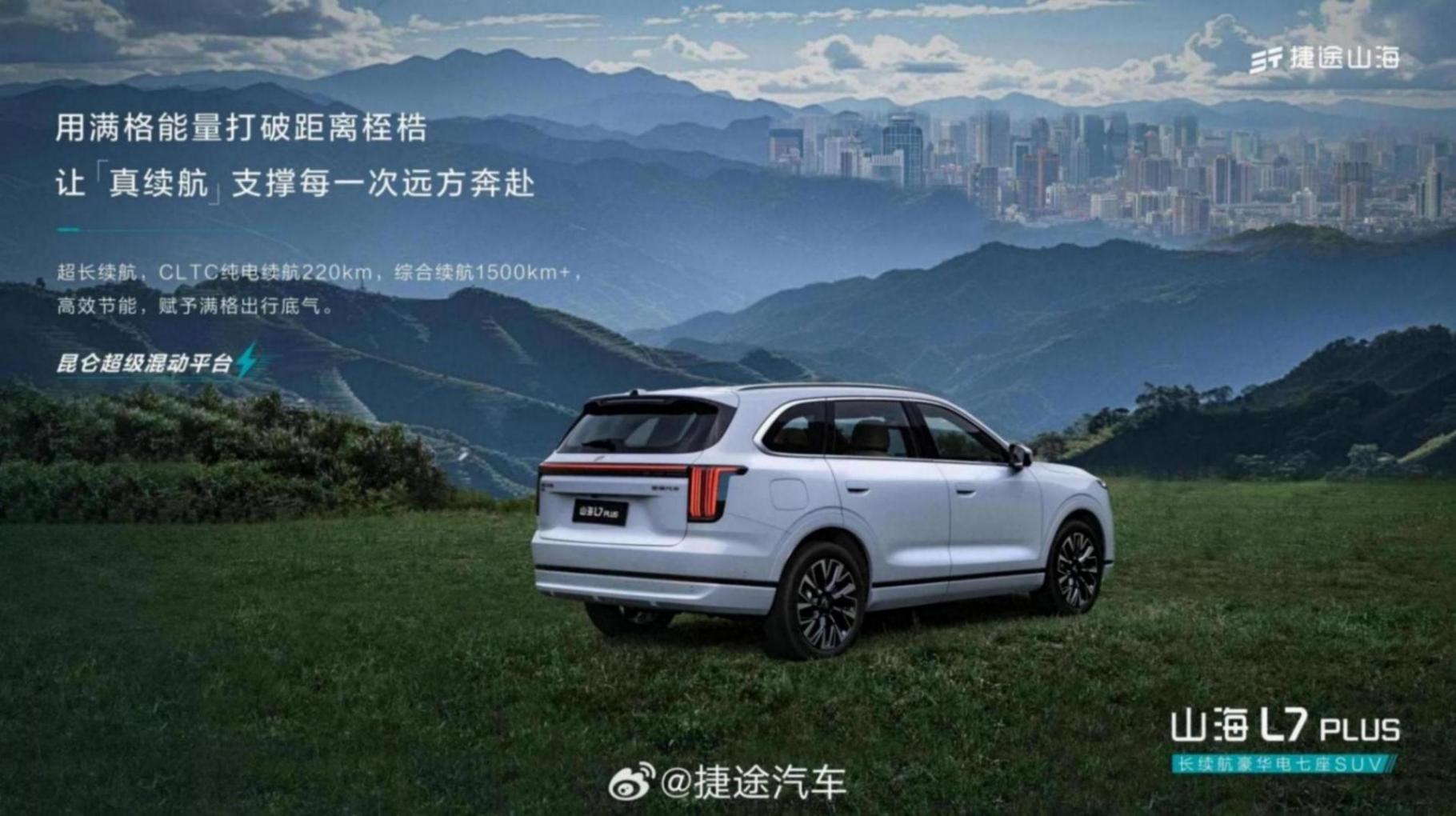 動力方面,捷途山海L7 PLUS搭載一套由型號為SQRH4J15的1.5T發動機組成的插電混動系統,其中發動機最大功率為115kW,最大綜合功率265kW,綜合最大扭矩530N.m,CLTC純電續航220km,綜合續航可達1500km+。#捷途山海L7 Plus