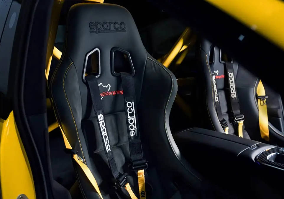 底盤方面,紐北限量版配備了倍適登 EVO R 賽用絞牙減振器,其調校設定和跑紐北圈速記錄的車型相同,能更好地適應賽道駕駛需求。另外,車輛還配備了碳纖維空氣動力學底護板,它可以整合底盤亂流,增加 44 公斤的最大下壓力,提升車輛行駛的穩定性。