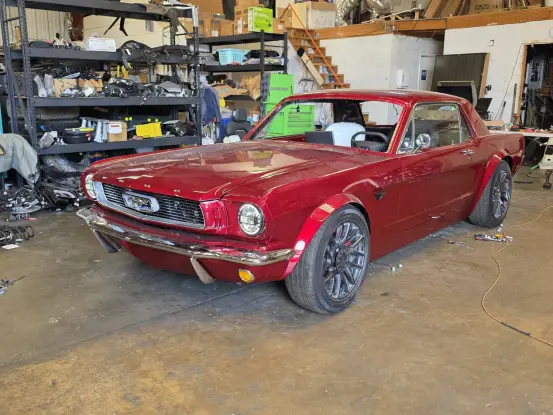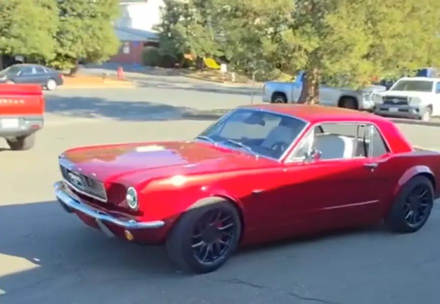 視頻中,這輛雙門野馬轎跑采用了醒目的紅色外觀,其引擎蓋下經過了徹底改造,搭載了特斯拉的全套動力系統以及自動駕駛硬件。