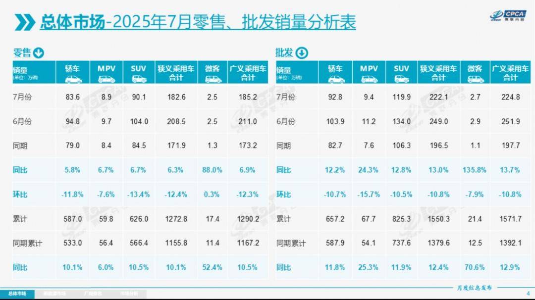 從乘聯會近日公布的7月份銷量數據來看,7月全國乘用車市場零售182.6萬輛,同比增長6.3%,1-7月全國汽車累計零售輛達到1,272.8萬輛,同比增長10.1%。盡管7月銷量同比增幅相比前幾月有所回落,但仍然創下了歷年汽車銷量新高,相比此前峰值2023年的176.8萬輛,增長了3%。