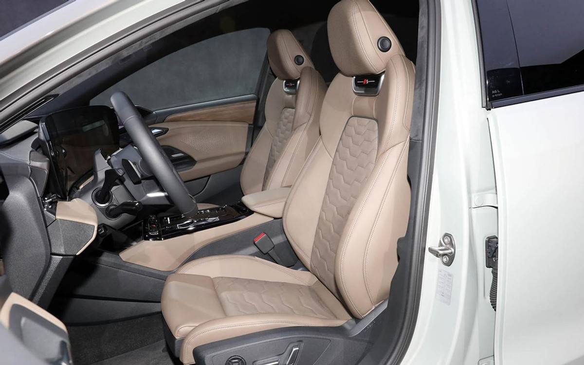 再來看內飾,講真,奧迪A6L e-tron這車內布局其實就是在燃油版A6L的底子上加入了三塊大屏,也是奧迪新時代下最新的內飾設計語言??梢灶A見到的是,像什么HUD抬頭顯示系統、帶頭枕揚聲器的Bang&Olufsen品牌音響以及座椅加熱/通風等功能應該都會有。