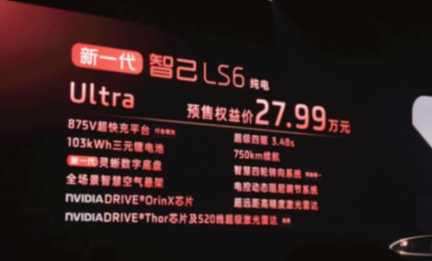同樣值得期待的,是新一代智己LS6要搭載的智駕系統。與在售智己LS6一樣,新車也采用的是Momenta的智駕方案。不過,在純電Ultra版本上,用戶還可以選裝英偉達Thor芯片與520線超級激光雷達,硬件水平可謂是拉滿了。而在純電和增程的Pro版本上,智己LS6則提供視覺方案的智駕系統,也是以前沒有過的。