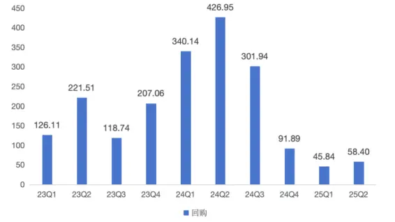 2024和2025財年,阿里巴巴的回購金額均在800-900億元的體量,但趨勢上,從FY25Q3也就是2024年四季度開始,阿里巴巴的回購金額已經大幅下滑,這自然是為資本開支騰挪資金。