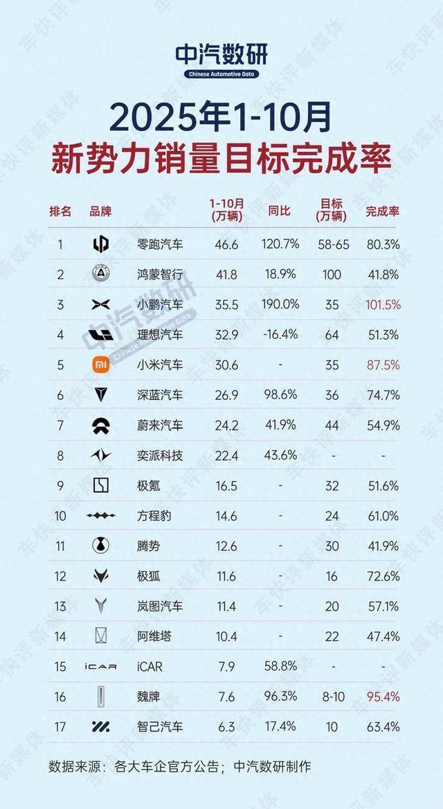 最后看一下蔚來汽車今年的目標(biāo)完成率情況,1~10月蔚來汽車?yán)塾嬩N量是24.2萬輛,目標(biāo)完成率僅為54.9%。毫無疑問,蔚來汽車今年鐵定是完不成44萬輛的銷量目標(biāo)了。